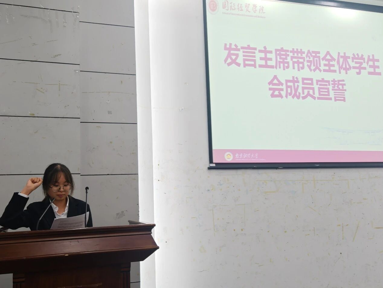 会议最后,在学生会主席董苏红的带领下,学生会全体成员庄严宣誓,铿锵有力的誓言彰显出大家履职尽责、服务同学的坚定决心。